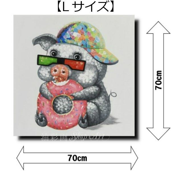 1パネル アニマルポップアート 食いしん坊な子豚ちゃん Lサイズ 油彩画 インテリア モダン アートパネル 5106l