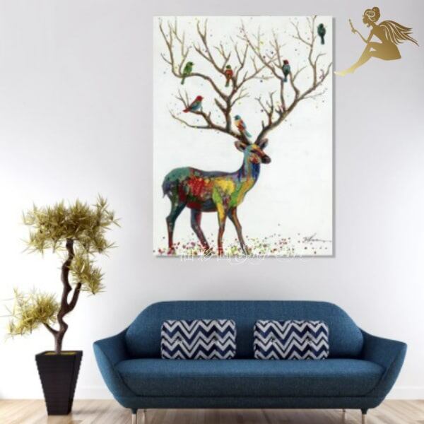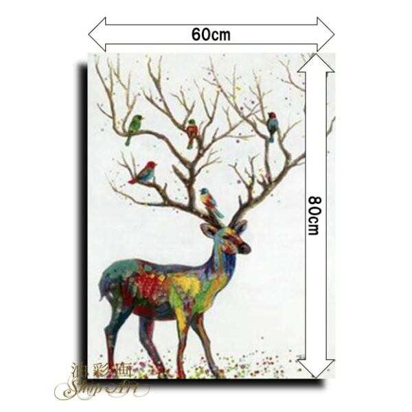 1パネル 鹿と小鳥たち 油彩画 インテリア モダン アートパネル 5116