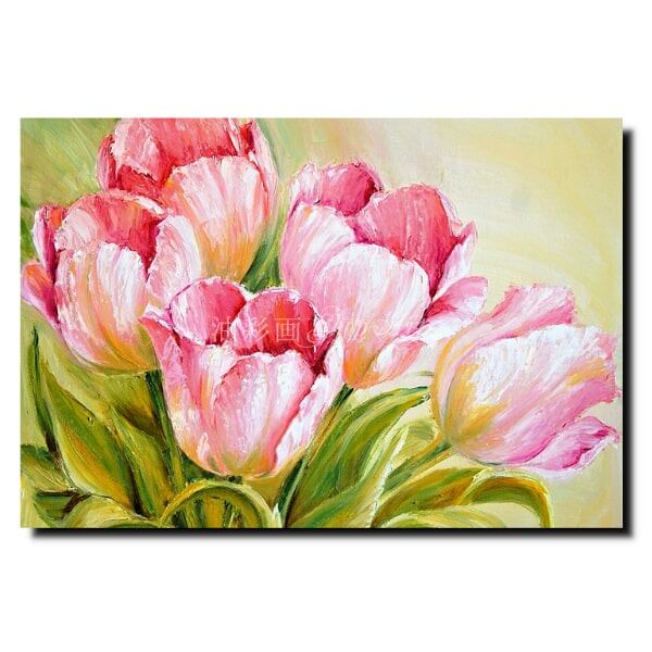 1パネル ピンクのチューリップ 油彩画 インテリア モダン アートパネル 5152