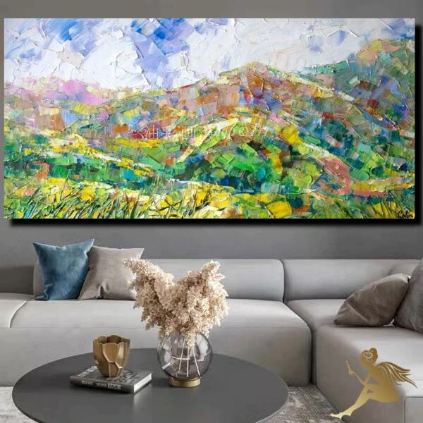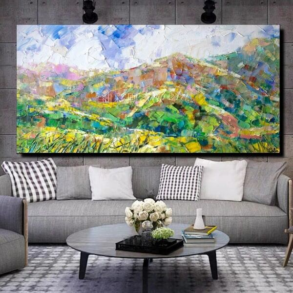 1パネル カラフルな山と空 油彩画 インテリア モダン アートパネル 5159