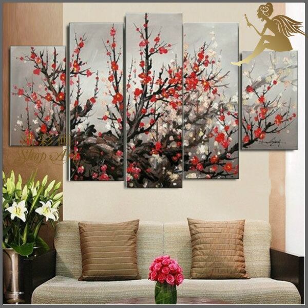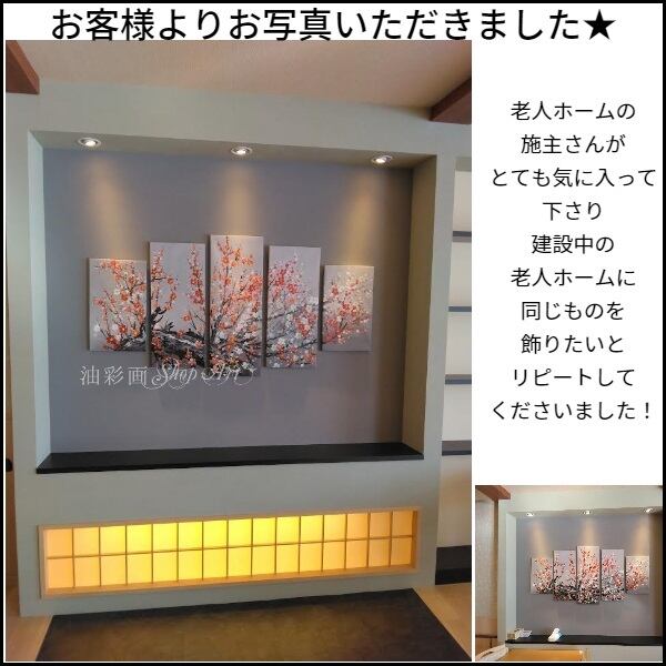 5パネル 『紅白和の花』 油彩画 インテリア モダン アートパネル 1547