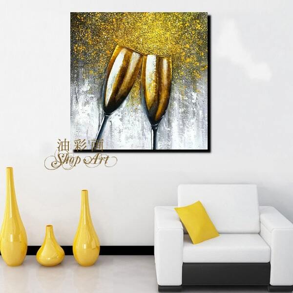 1パネル 乾杯シャンパンゴールド Mサイズ 油彩画 インテリア モダン アートパネル 5224