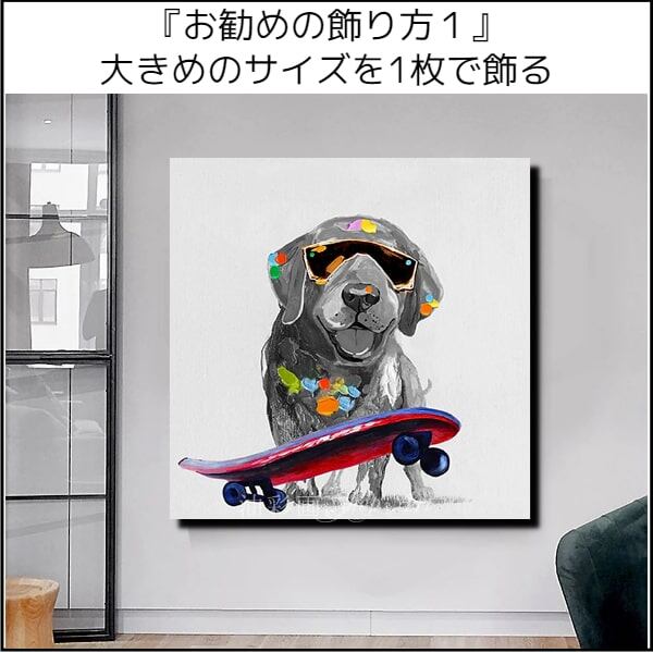 1パネル アニマルポップアート スケボーワンチャン Sサイズ 油彩画 インテリア モダン アートパネル 5180s