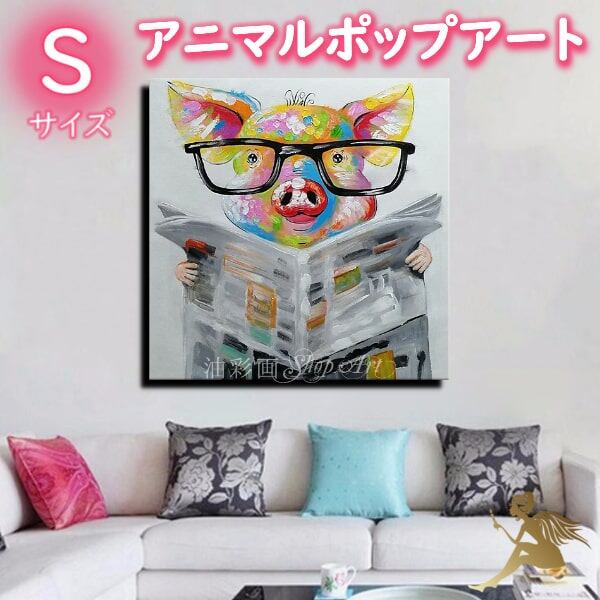 1パネル アニマルポップアート 新聞を読むブタのお父さん Sサイズ 油彩画 インテリア モダン アートパネル 5188s