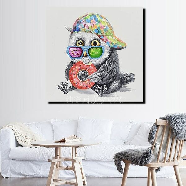 1パネル アニマルポップアート 食いしん坊なフクロウさん Mサイズ 油彩画 インテリア モダン アートパネル 5190m
