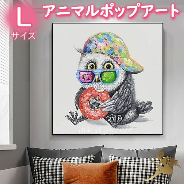 1パネル アニマルポップアート 食いしん坊なフクロウさん Lサイズ 油彩画 インテリア モダン アートパネル 5190l