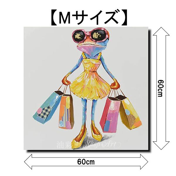 1パネル アニマルポップアート ショッピング好きなカエルさん Mサイズ 油彩画 インテリア モダン アートパネル 5191m