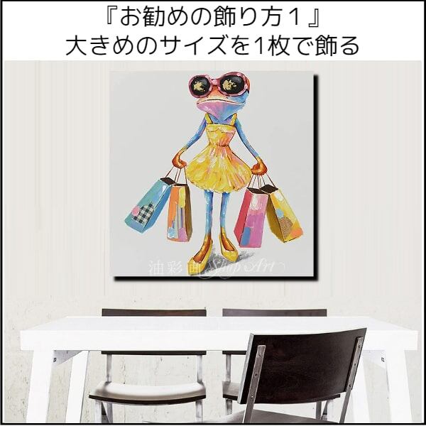 1パネル アニマルポップアート ショッピング好きなカエルさん Lサイズ 油彩画 インテリア モダン アートパネル 5191l