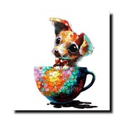 1パネル アニマルポップアート カップINワンチャン Sサイズ 油彩画 インテリア モダン アートパネル 5196s