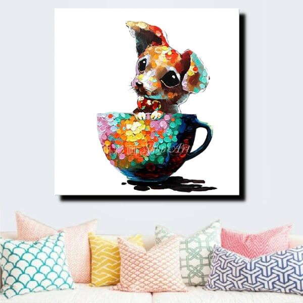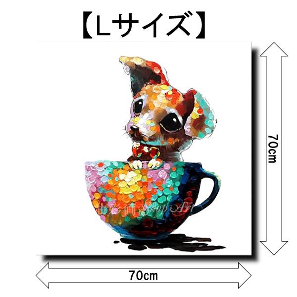 1パネル アニマルポップアート カップINワンチャン Lサイズ 油彩画 インテリア モダン アートパネル 5196l