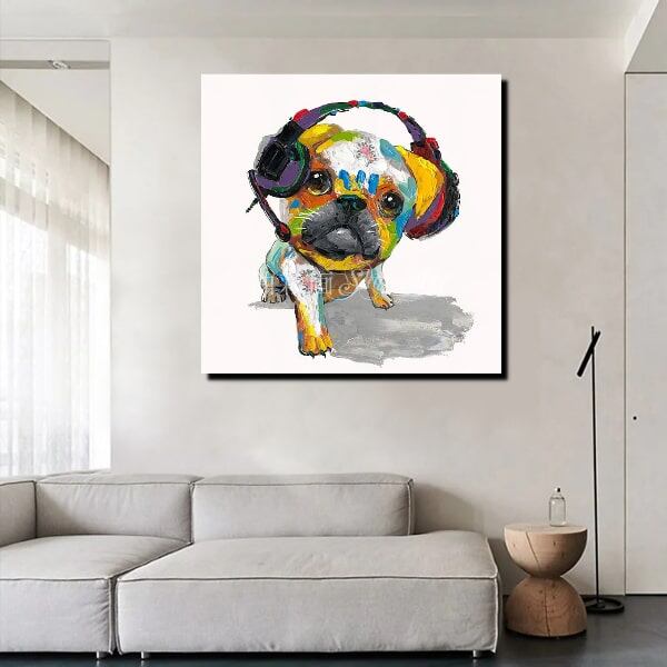 1パネル アニマルポップアート ヘッドフォンわんちゃん Sサイズ 油彩画 インテリア モダン アートパネル 5198s