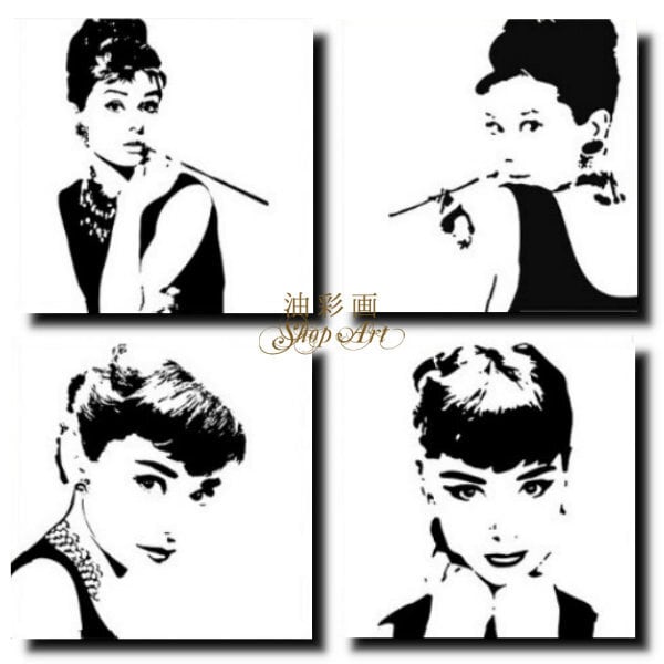 4パネル 『オードリーヘップバーン Mサイズ』 油彩画 インテリア モダン アートパネル 1544