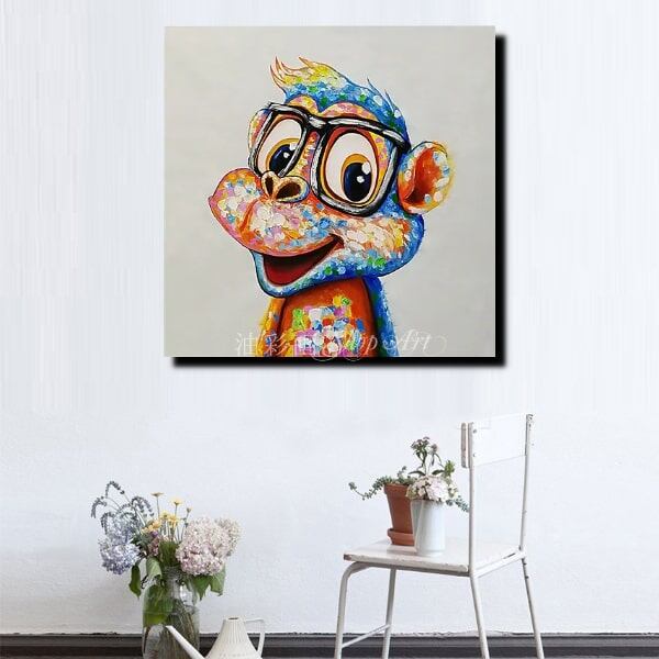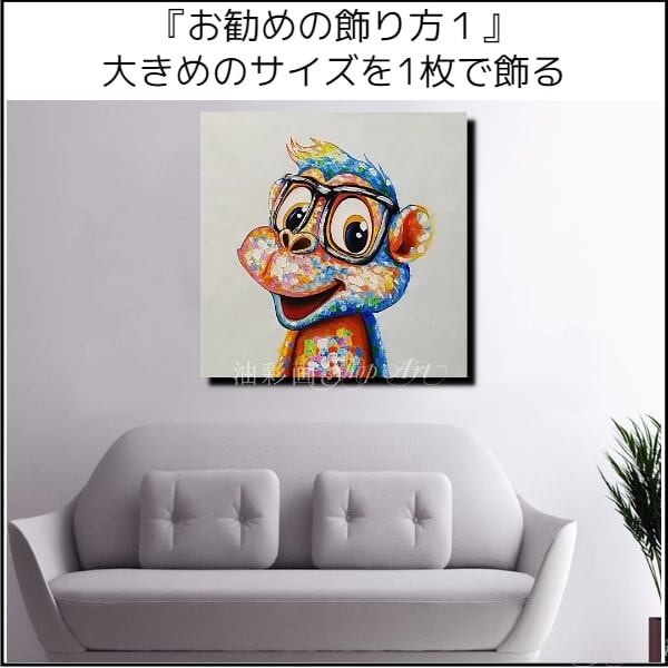 1パネル アニマルポップアート 眼鏡サルさん Mサイズ 油彩画 インテリア モダン アートパネル 5212