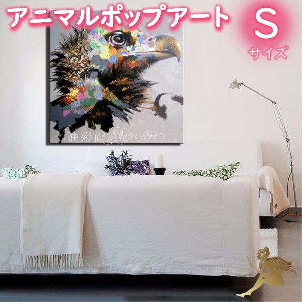 1パネル アニマルポップアート かっこいい鷲さん Sサイズ 油彩画 インテリア モダン アートパネル 5213s