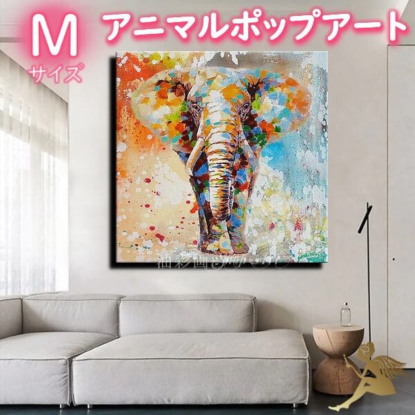 1パネル アニマルポップアート 立派なぞうさん Mサイズ 油彩画 インテリア モダン アートパネル 5254