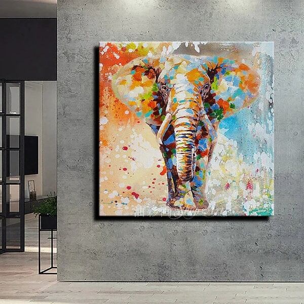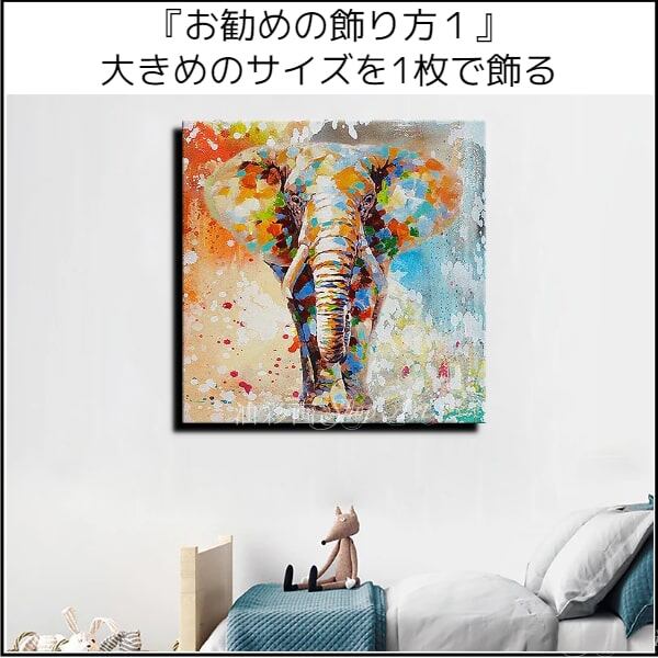 1パネル アニマルポップアート 立派なぞうさん Lサイズ 油彩画 インテリア モダン アートパネル 5254l