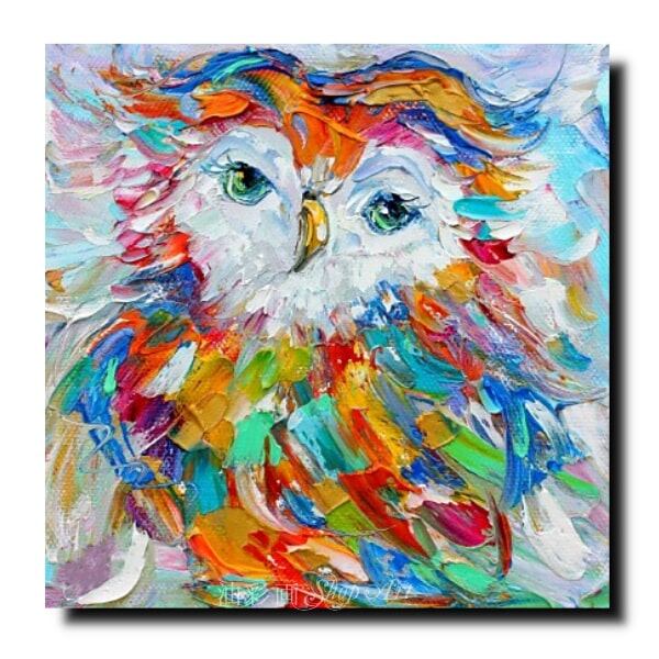 1パネル アニマルポップアート 美しいフクロウ Mサイズ 油彩画 インテリア モダン アートパネル 5255