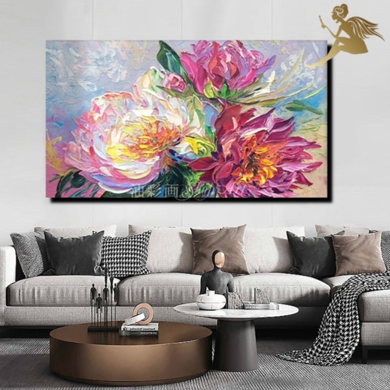 1パネル カラフルな紫の花々 油彩画 インテリア モダン アートパネル 5239