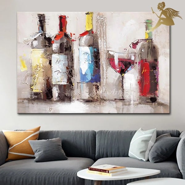 1パネル 沢山のワインボトル 油彩画 インテリア モダン アートパネル 5243