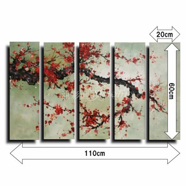 5パネル 『太い枝に咲く赤い花 Sサイズ』 油彩画 インテリア モダン アートパネル w0401s