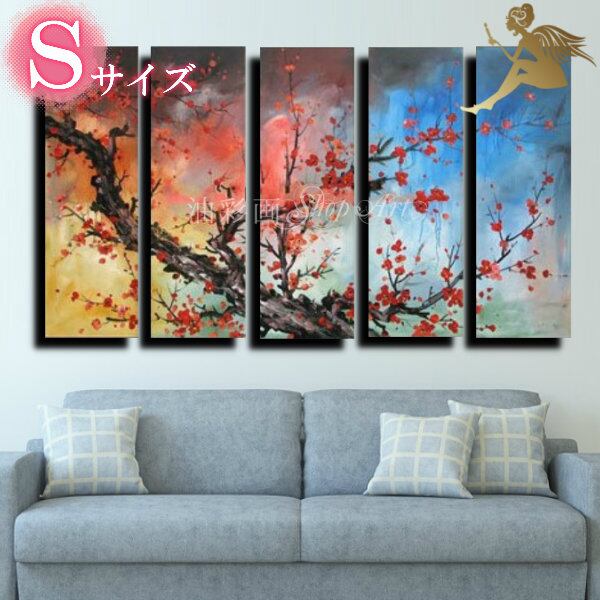 5パネル 『太い枝に咲く赤い花 Sサイズ』 油彩画 インテリア モダン アートパネル w0402s