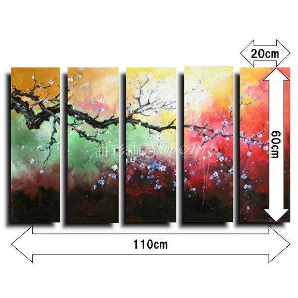 5パネル 『太い枝に咲く花 Sサイズ』 油彩画 インテリア モダン アートパネル w0406s