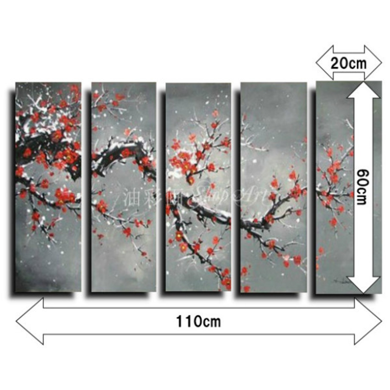 5パネル 『太い枝に咲く赤い花 Sサイズ』 油彩画 インテリア モダン アートパネル w0408s