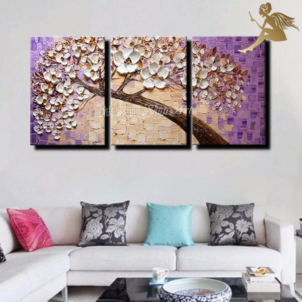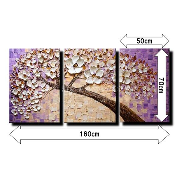 3パネル 『立体的な白い花 パープル』 油彩画 インテリア モダン アートパネル 1862