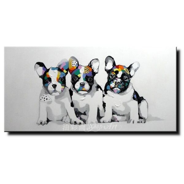 1パネル ワンコの3兄弟 Sサイズ 油彩画 インテリア モダン アートパネル 5105s