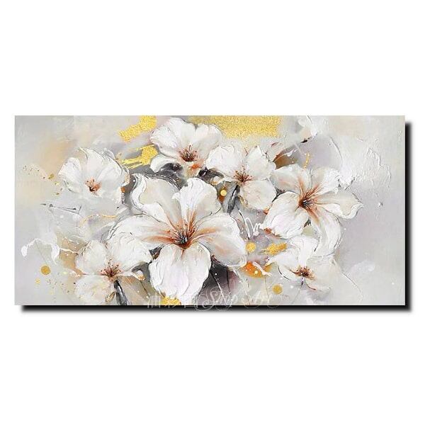1パネル 白い沢山のクラシカルフラワー Sサイズ 油彩画 インテリア モダン アートパネル 5220s