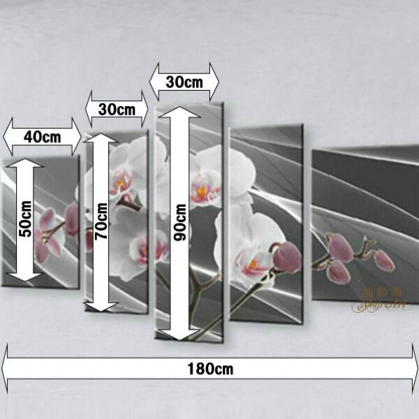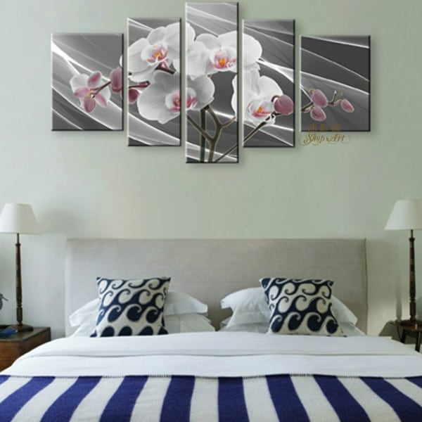 5パネル 『胡蝶蘭グレー』 油彩画 インテリア モダン アートパネル 1561