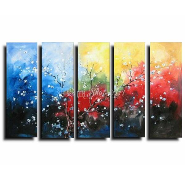 5パネル 太い枝に咲く白い花 油彩画 インテリア モダン アートパネル W0400 Lサイズ